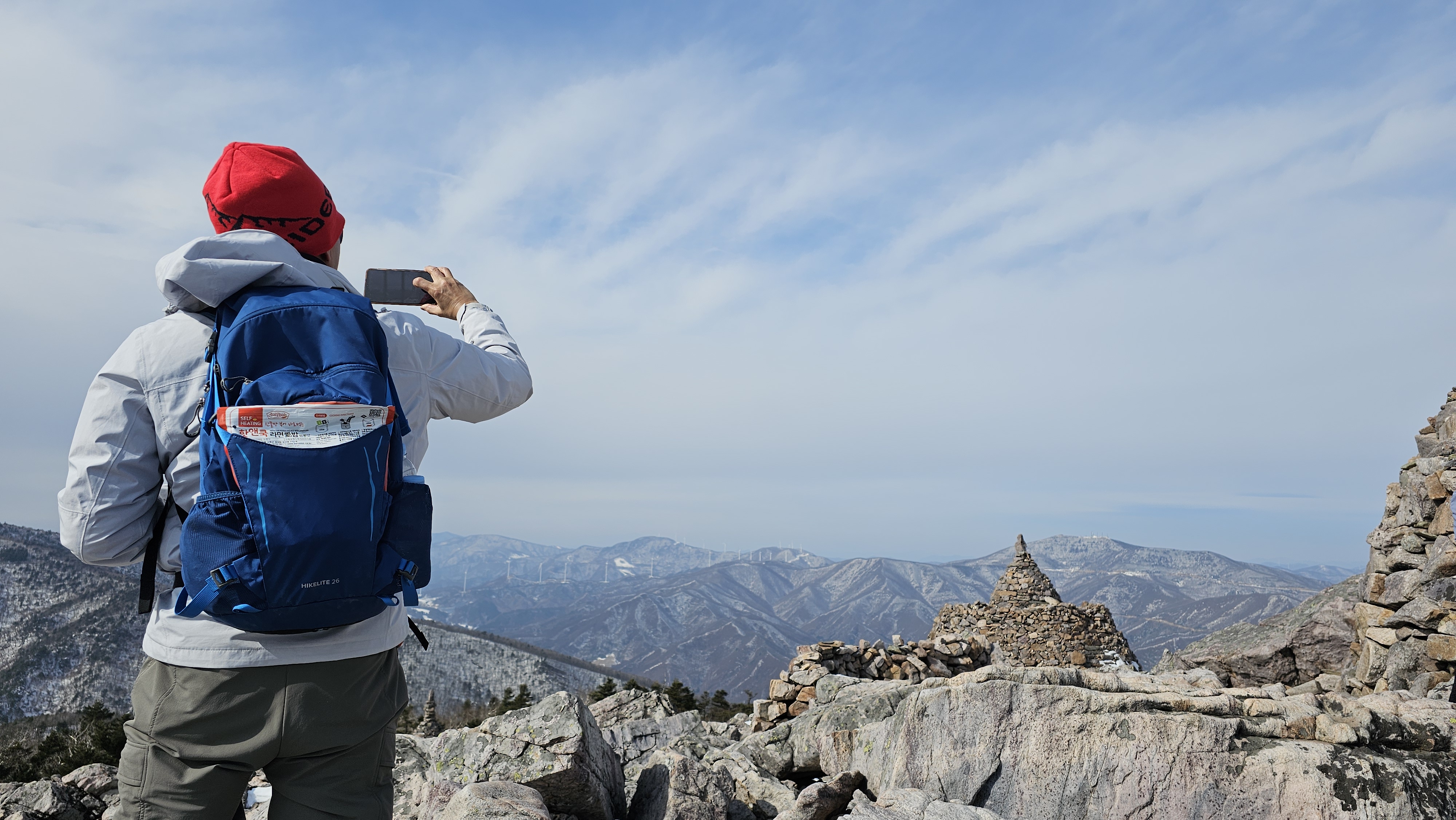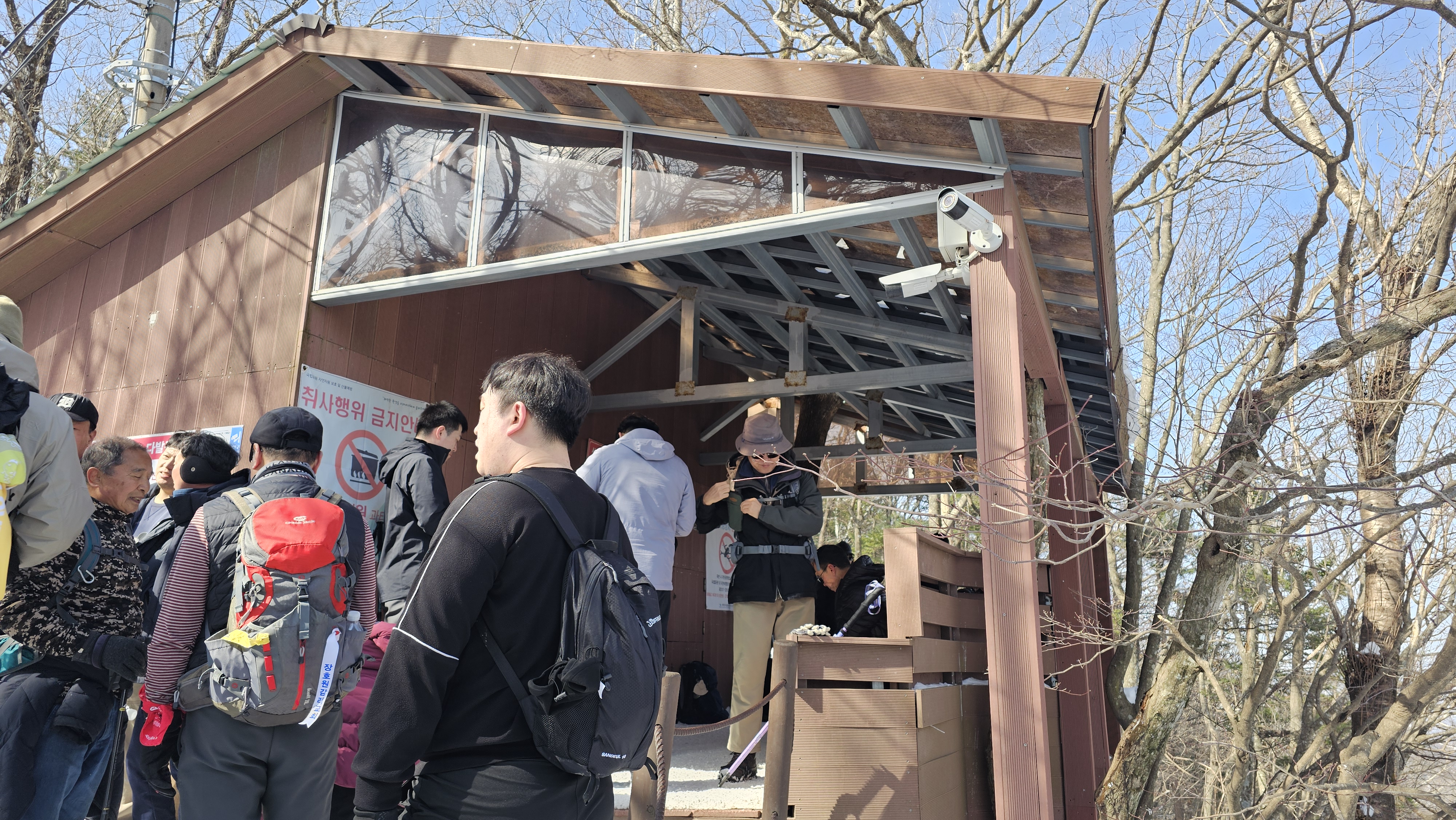 장군봉을 코 앞에 두고 점심 먹을 곳을 찾았다. 여기서부터 사람들이 점심을 먹기 시작하는 곳이다. 벌써 12시 반을 넘긴 시간이니 배 고플만도 하다. 물론 장군봉을 올라서면 다시 근처에 점심 먹을만한 장소는 많다. 중요한 것은 어디가 바람 덜부는 곳이냐를 판단하는 것이다.
